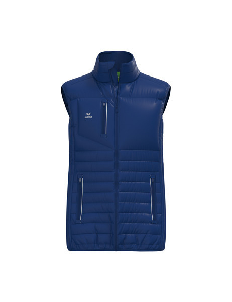 Lehká vycpaná vesta. Úzké prošívané švy pro sportovní střih. Límec s žebrovaným vnitřkem pro pohodlí. Podložený zip s ochranou brady. Boční kapsy na zip a náprsní kapsa s reflexním lemováním. Logo ERIMA na hrudi, reflexní logo na zádech. Vnitřní kapsa se suchým zipem.